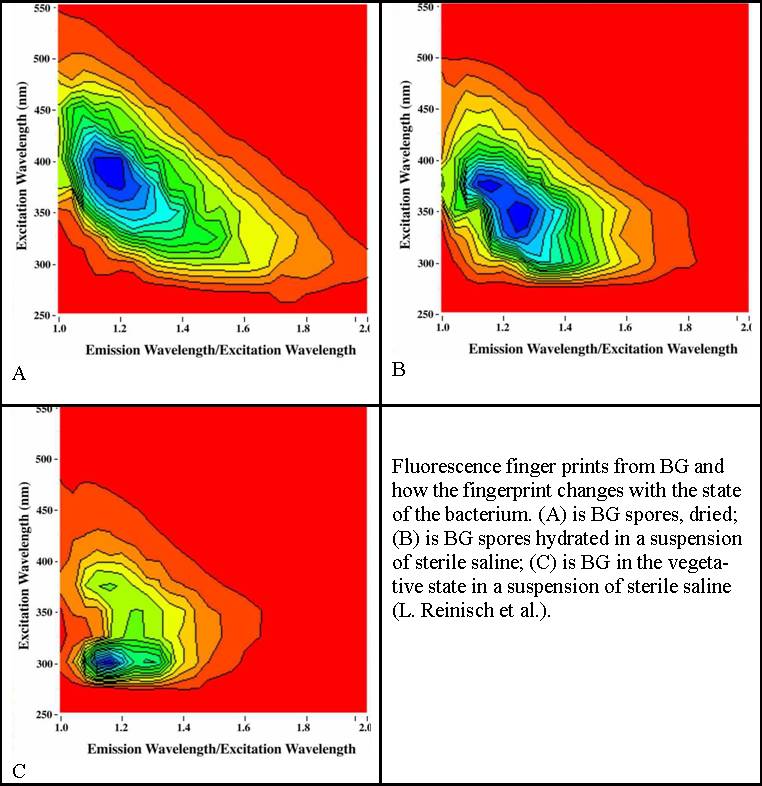 fluorescence spectra of Anthrax simulants in different states. Click Thumbnail to Enlarge